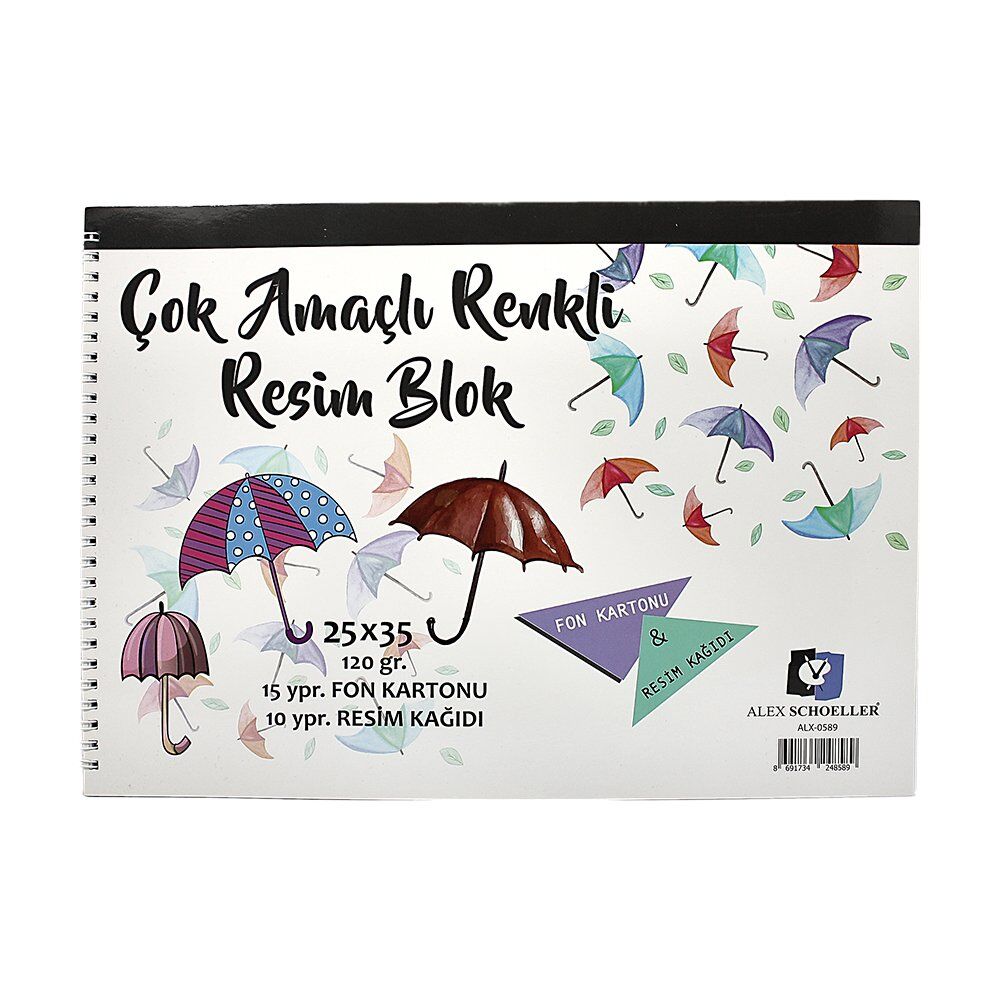 Alex Schoeller Resim Defteri Spiralli Renkli 120Gr 25X35 25 Yaprak 0589