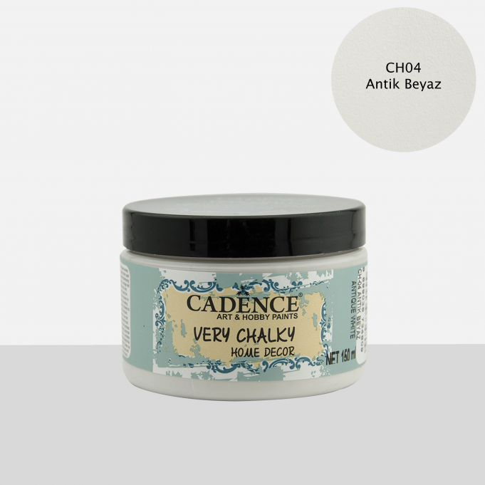Cadence Very Chalky mobilya boyası, yüksek kapatıcılık özelliği sayesinde en çok tercih edilen ultra mat boyadır. Eskitme çalışmalarında ve ahşap yüzeylerde en çok tercih edilen boyadır. Hızlı kuruduğundan dolayı katlar arasında 6 saat bekleme süresi vardır. Su bazlı ultra mat kadifemsi yapısı sayesinde lake yüzeyler dahil tüm yüzeylere kolayca uygulanabilir.  Very Chakly CH01 Beyaz boya ile ahşap, strafor, duvar, taş, tuval, beton, terracotta, tuğla, kağıt, metal ve seramik yüzeyleri boyayabilirsiniz.