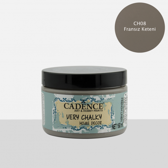 Cadence Very Chalky mobilya boyası, yüksek kapatıcılık özelliği sayesinde en çok tercih edilen ultra mat boyadır. Eskitme çalışmalarında ve ahşap yüzeylerde en çok tercih edilen boyadır. Hızlı kuruduğundan dolayı katlar arasında 6 saat bekleme süresi vardır. Su bazlı ultra mat kadifemsi yapısı sayesinde lake yüzeyler dahil tüm yüzeylere kolayca uygulanabilir.  Very Chakly CH01 Beyaz boya ile ahşap, strafor, duvar, taş, tuval, beton, terracotta, tuğla, kağıt, metal ve seramik yüzeyleri boyayabilirsiniz.