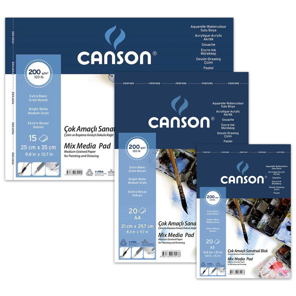 Canson çok amaçlı defterler beyaz, dayanıklı, hafif dokulu kağıt kulanılarak hazırlanmaktadır. 200g/m² kağıt içerirler. Akrilik boya, sulu boya, pastel boya, mürekkep, ve çizim/eskiz için idealdir.