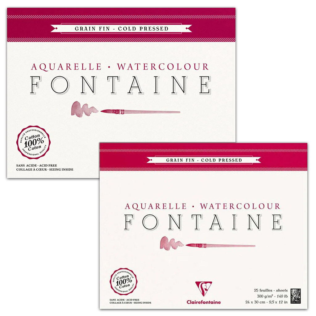 Fontaine, Schut Mill'de üretilen %100 pamuklu ve asitsiz birinci sınıf bir kağıttır. Bu kağıdın yüzeyi, olağanüstü parlak renkler elde etmeye yardımcı olan özel bir jelatin boyutlandırma işleminden geçirilmiştir. 300 lb'lik blok, deneyimli sanatçılar için önerilir.