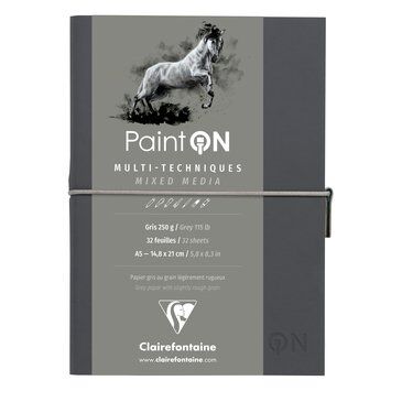 Clairefontaine Paint-On Gri Deri Kapak Multi Teknik Çizim Defteri A5 250gr 32 Yaprak