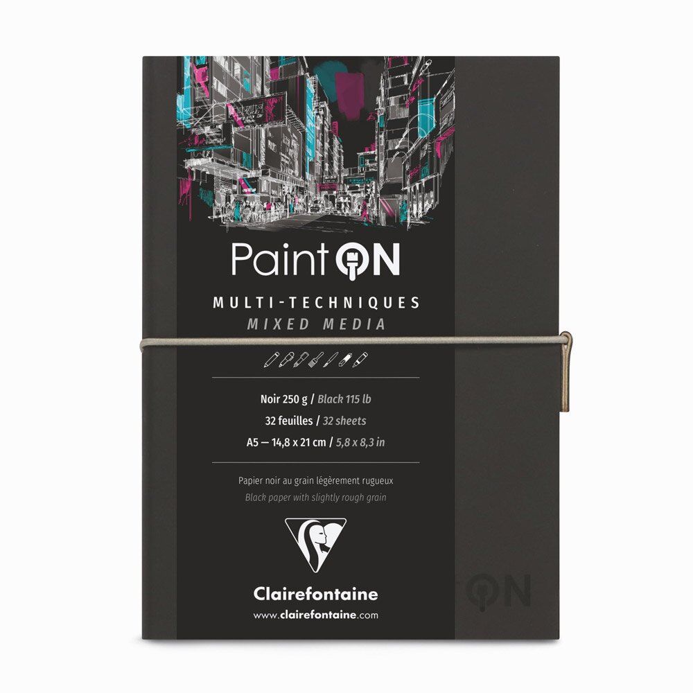Clairefontaine Paint-On Siyah Deri Kapak Multi Teknik Çizim Defteri A5 250gr 32 Yaprak