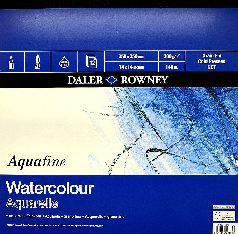 Daler-Rowney Aquafine Suluboya Kağıdı %100 işlenmemiş odun hamurundan yapılmıştır. Bu kağıt asitsizdir ve zaman içinde rengin bozulmasını önlemek için kalsiyum karbonat katkılıdır.