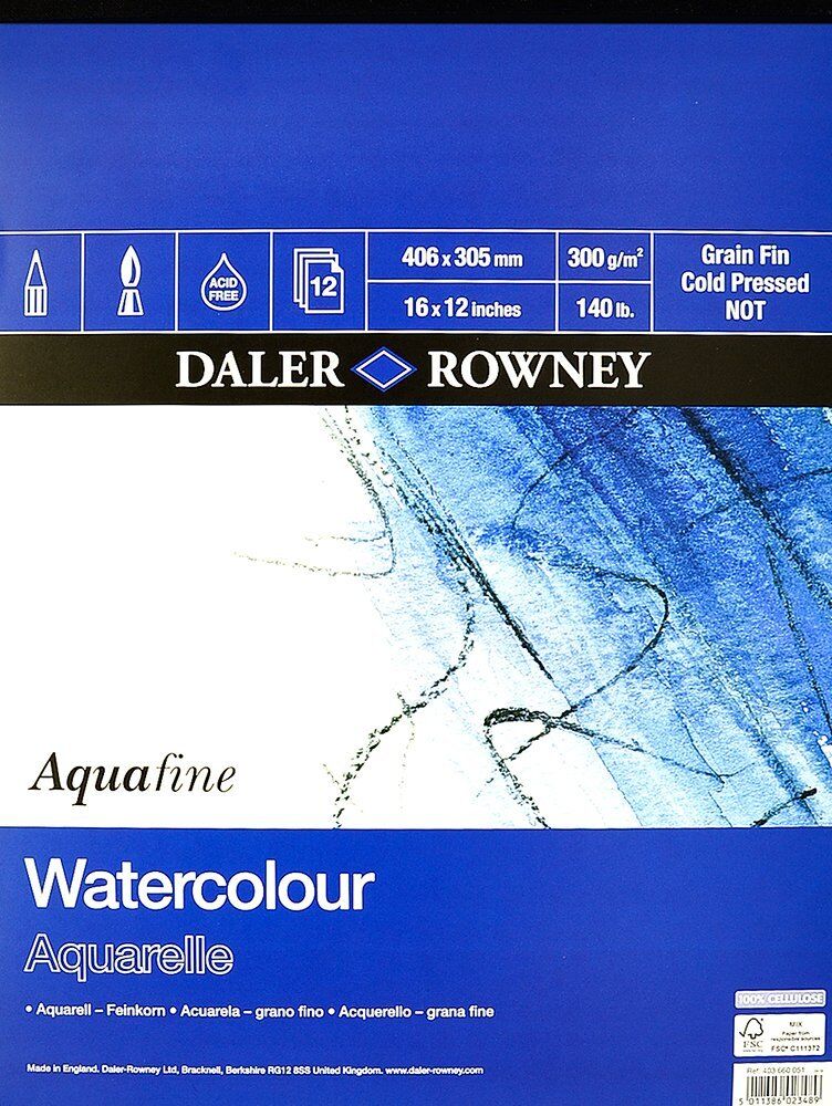 Daler-Rowney Aquafine Suluboya Kağıdı %100 işlenmemiş odun hamurundan yapılmıştır. Bu kağıt asitsizdir ve zaman içinde rengin bozulmasını önlemek için kalsiyum karbonat katkılıdır.