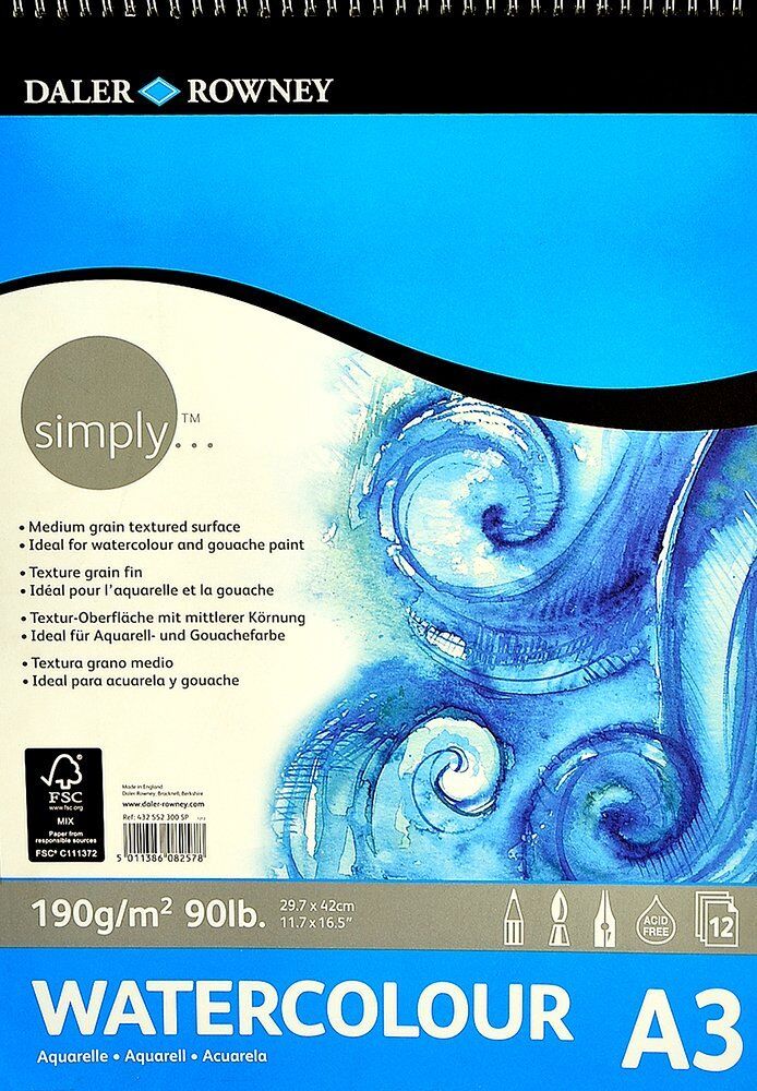 Daler-Rowney Simply Suluboya Kağıdı, suluboya ve guajın yanı sıra çizim ve mürekkep tekniklerinin uygulanması için mükemmel olan orta grenli dokulu bir yüzeye sahiptir. Simply suluboya kağıdı, suluboya resim denemeleri yapmak isteyen hobiciler için mükemmeldir.