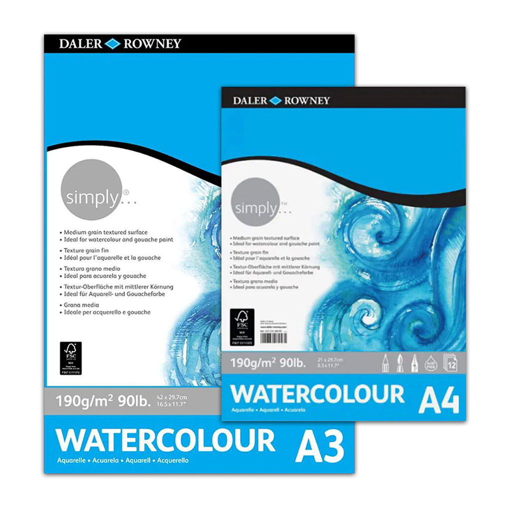 Daler-Rowney Simply sulu boya kağıdı, sulu boya ve guajın yanı sıra çizim ve mürekkep tekniklerinin uygulanması için mükemmel olan orta grenli dokulu bir yüzeye sahiptir. Simply sulu boya kağıdı, sulu boya resim denemeleri yapmak isteyen hobiciler için mükemmeldir.
