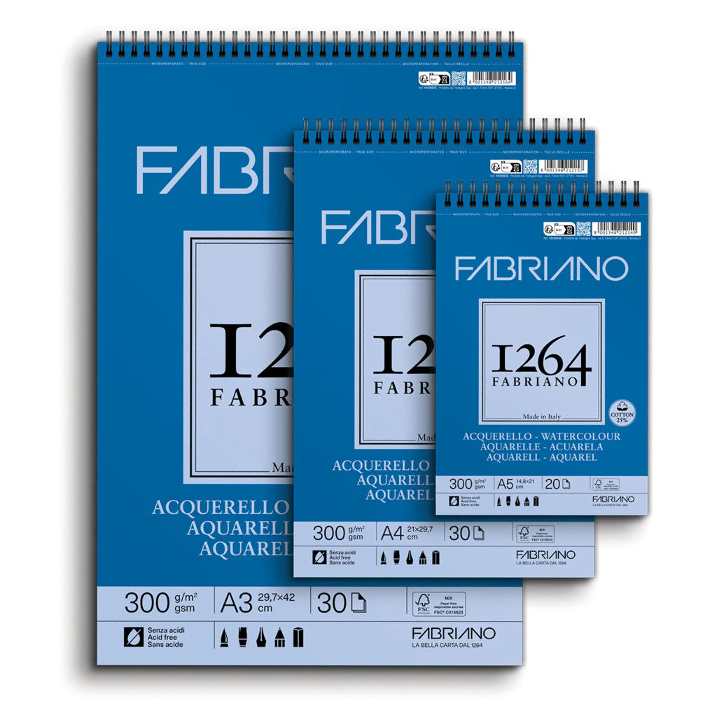 Fabriano 1264 sulu boya kağıdı, olağanüstü kalitede bir soğuk pres yüzeyine sahiptir: emici, ancak çok fazla değil, çizilmeye karşı dayanıklıdır. Renklerin canlılığını artırmakla kalmaz, aynı zamanda tüm kaldırma ve fırçalama tekniklerini mümkün kılar ve çok affedicidir.