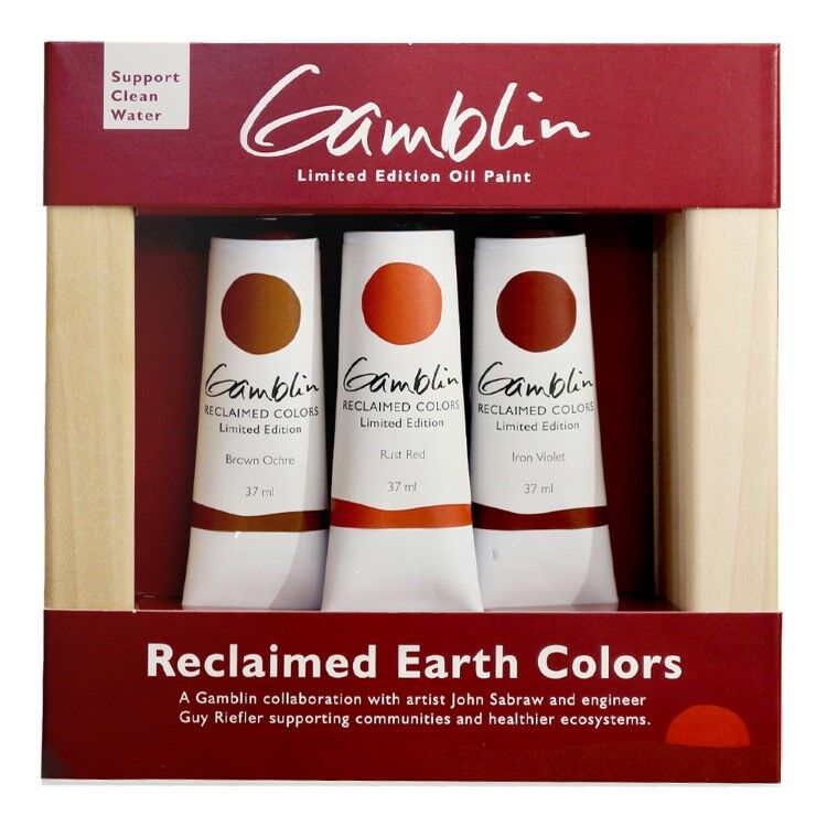 Bu sınırlı sayıdaki Reclaimed Earth Yağlı Boya Seti, kahverengi toprak boyası, pas kırmızısı ve demir menekşesi renklerinden her biri 37 ml'lik 3 adet tüp içerir; renkler yalnızca bu sette mevcuttur. Bu tüplerdeki her bir pigment lekesi, madenlerden çıkan demirle kirlenmiş sulardan özenle geri kazanılmıştır. Demir oksitlerle yapılan Yağlı Boyalar ışığa dayanıklı, doğal ve güvenlidir.