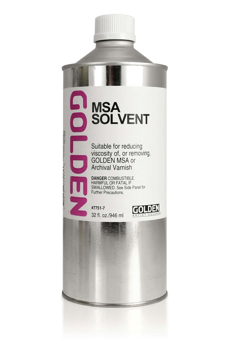 Golden MSA (Mineral Spirit Akrilik) Solvent, kullanımdan önce inceltilmesi gereken Golden MSA Verniklerin incelmesi için ideal solventtir. MSA Solvent, her seferinde berrak, temiz ve eşit uygulama sağlar. Golden MSA Solvent, daha sonra restorasyon amacıyla MSA Verniği çıkarmak için de kullanılabilir.