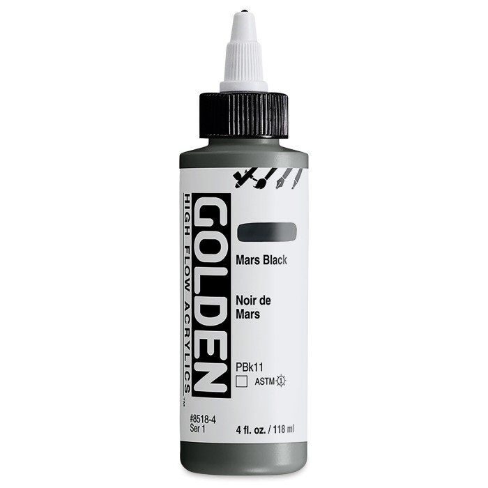 High Flow, Floresan ve Yanardöner renklerin yanı sıra birçok tek pigment rengi içeren bir palet sunar. Mürekkep görevi görse de akriliktir, bu nedenle diğer GOLDEN Akrilik renkleri ve ortamları ile uyumludur.