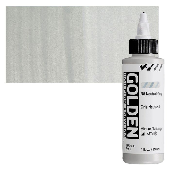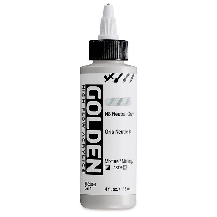 High Flow, Floresan ve Yanardöner renklerin yanı sıra birçok tek pigment rengi içeren bir palet sunar. Mürekkep görevi görse de akriliktir, bu nedenle diğer GOLDEN Akrilik renkleri ve ortamları ile uyumludur.