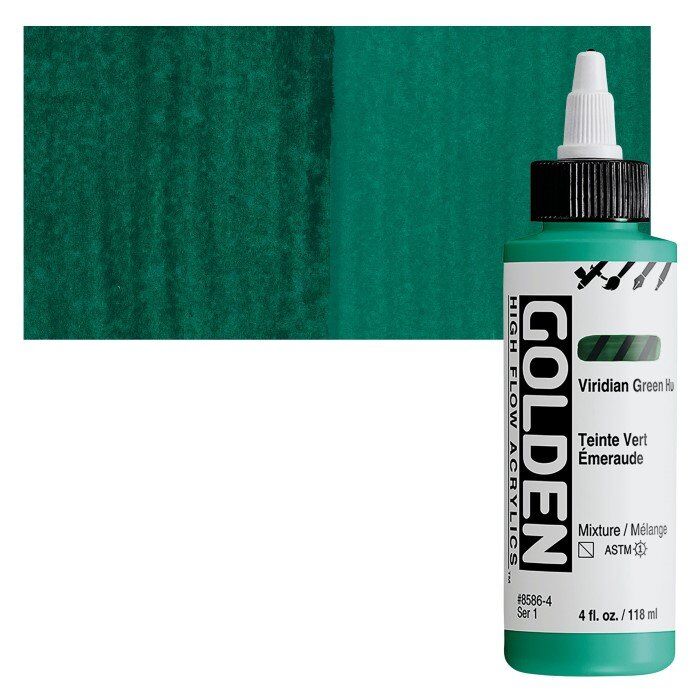 High Flow, Floresan ve Yanardöner renklerin yanı sıra birçok tek pigment rengi içeren bir palet sunar. Mürekkep görevi görse de akriliktir, bu nedenle diğer GOLDEN Akrilik renkleri ve ortamları ile uyumludur.