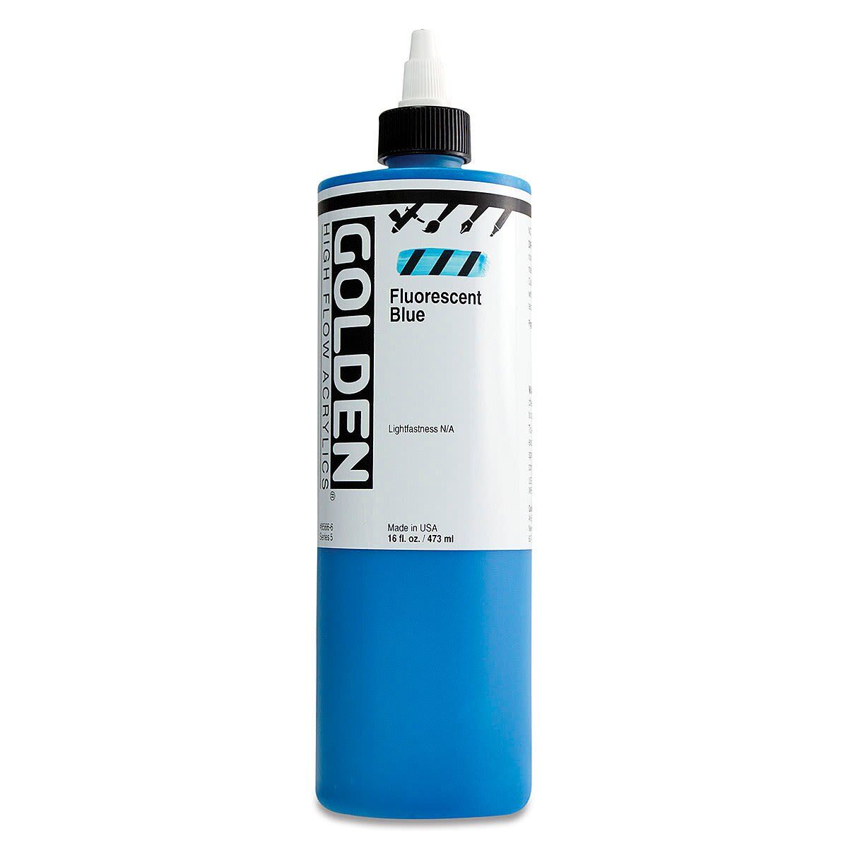 High Flow, Floresan ve Yanardöner renklerin yanı sıra birçok tek pigment rengi içeren bir palet sunar. Mürekkep görevi görse de akriliktir, bu nedenle diğer GOLDEN Akrilik renkleri ve ortamları ile uyumludur.