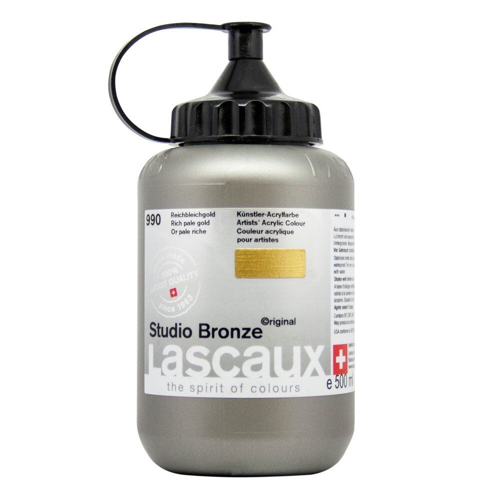 Lascaux Studio Bronze, tasarım, dekorasyon ve mimaride kullanım için bir dizi ışıltılı bronz renktir. Dış mekan uygulamaları için de uygundurlar. Saf, oksitleyici olmayan metalik pigmentlerden yapılan bu sekiz parlak bronz renk, ışığa karşı dayanıklıdır ve belirgin bir metalik parlaklığa sahiptir. Lascaux Studio Bronze, su geçirmez, esnek ve saten mat bir yüzey elde etmek için su ile seyreltilebilir ve kurutulabilir. Renkler, büyük ölçekli işler ve mimari iç ve dış tasarım için kullanılabilir. Hava koşullarına maruz kaldığında, Lascaux Transparent Varnish UV ile koruyucu bir kaplama öneriyoruz.