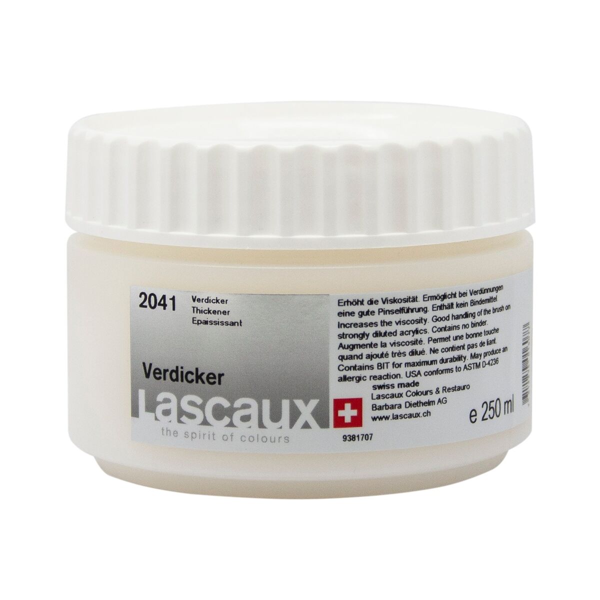 Gelince Haber VerLascaux Verdicker, yüksek oranda seyreltilmiş renklerin kıvamını ve viskozitesini artırır ve yayılabilirliğini korur. Kalınlaştırma etkisi sadece ıslak renklerde görülür.