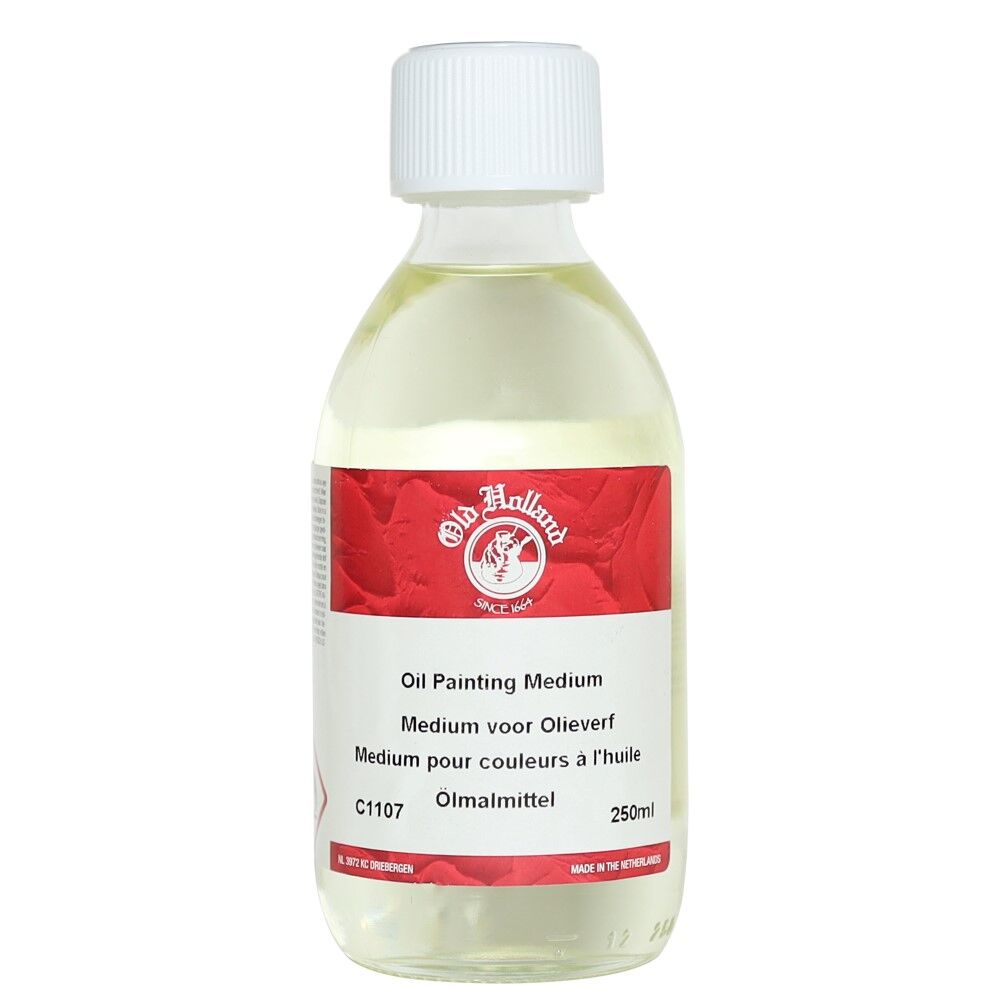 Old Holland Oil Painting Medium, yağlı boyaları inceltir, akışkanlığı artırır ve akıcılığı artırır. Keten tohumu yağı, terebentin yağı ve beyaz ispirto karışımından yapılmıştır, reçine veya kurutucu içermez. Parlaklığı azaltır ve fırça darbelerinin görünür kalmasını sağlar ancak kuruma süresini etkilemez.