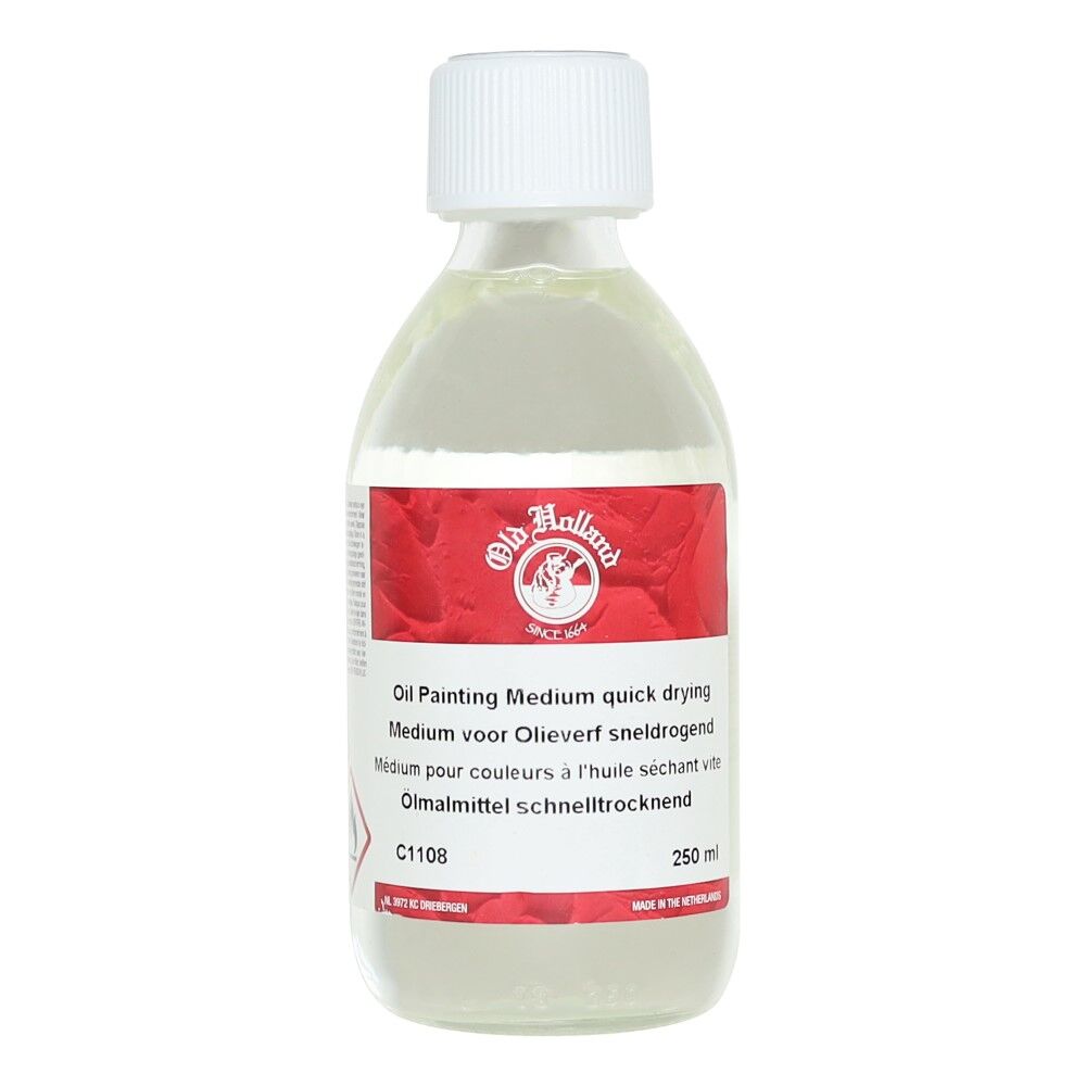 Daha hızlı kuruma süreleri sağlar, parlaklığı azaltır ve fırça darbelerinin görünür kalmasını sağlar. Keten tohumu yağı, terebentin yağı ve beyaz ispirto karışımından yapılan Quick Drying Paint Medium, reçine veya kurutucu içermez.