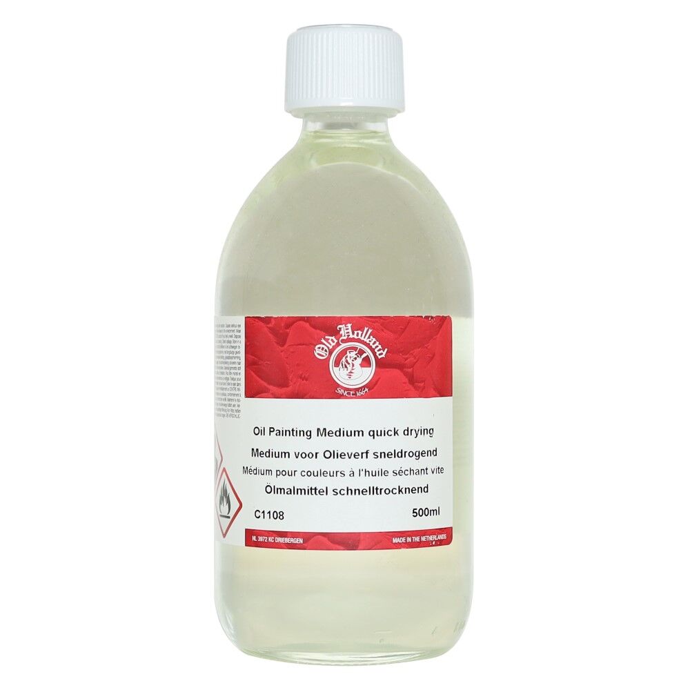 Daha hızlı kuruma süreleri sağlar, parlaklığı azaltır ve fırça darbelerinin görünür kalmasını sağlar. Keten tohumu yağı, terebentin yağı ve beyaz ispirto karışımından yapılan Quick Drying Paint Medium, reçine veya kurutucu içermez.