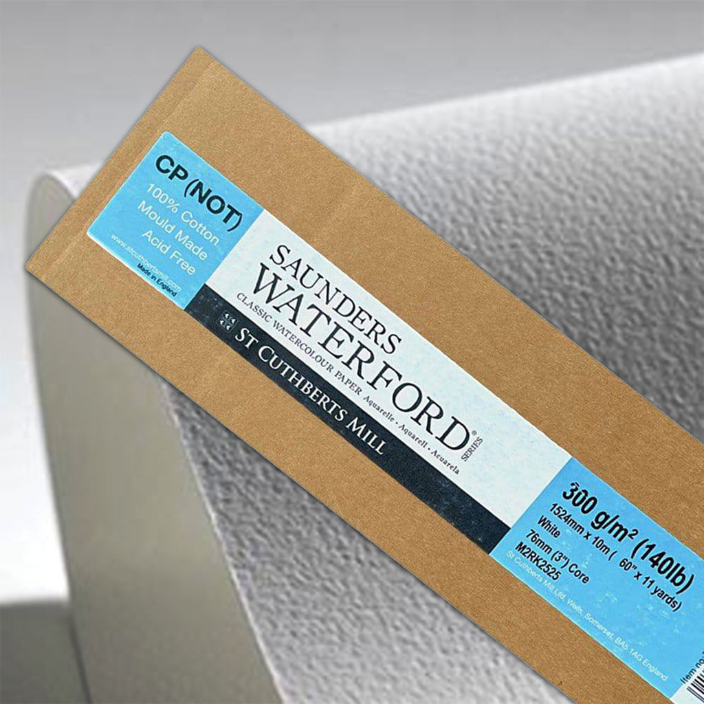 Saunders Waterford®, geleneksel olarak bir silindir kalıp makinesinde yapılan mükemmel bir sulu boya kağıdıdır. Bu, St Cuthberts Mill tarafından yapılan üstün kaliteli suluboya kağıdıdır ve Royal Suluboya Derneği'nin onayıyla birlikte gelir. En yüksek kalitede kağıt yapım malzemesi olan %100 pamuk kullanılarak yüksek arşiv standartlarına göre yapılmıştır. Her tabaka, bitmiş iş parçalarını atmosferik kirlilikte bulunan asitlerin neden olduğu renk solmasına karşı korumaya yardımcı olmak için kalsiyum karbonat ile tamponlanmıştır.