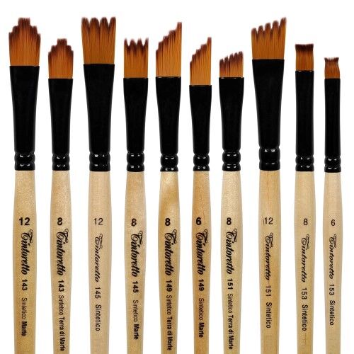 Çentikli kılıç şeklindeki fırça, Mars sentetik elyafı. Siyah vernikli pirinç yüksük. Kısa ahşap sap, şeffaf vernikli, siyah uç.