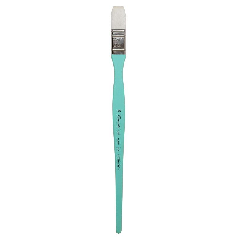Yüksek Kaliteli, %100 Vegan Aquaflat 1495 Serisi Fırça Suluboya Sanatçısı Felice Feltracco işbirliğiyle geliştirilen, hem sentetik elyafların özel yumuşaklığı hem de yüksek su depolama kapasitesi, fırçayı tekrar tekrar yükleme yapmaya gerek kalmadan geniş fırça darbelerine izin verir. Orta ve büyük ölçekli sulu boyalar için ideal olup, kağıdın liflerine hassasiyet göstererek ıslak zemin üzerine su veya renklerinizi yaymak için ideal uygunluktadır. Kuru zeminlerde fırça darbeleriyle dinamizm yaratmak için de kullanılabilir. Paslanmaz çelik halka su geçirmez vernikli uzun sap ise akıcı hareketlerinizi ve kullanımı kolaylaştırır.
