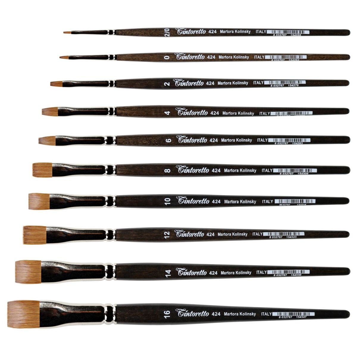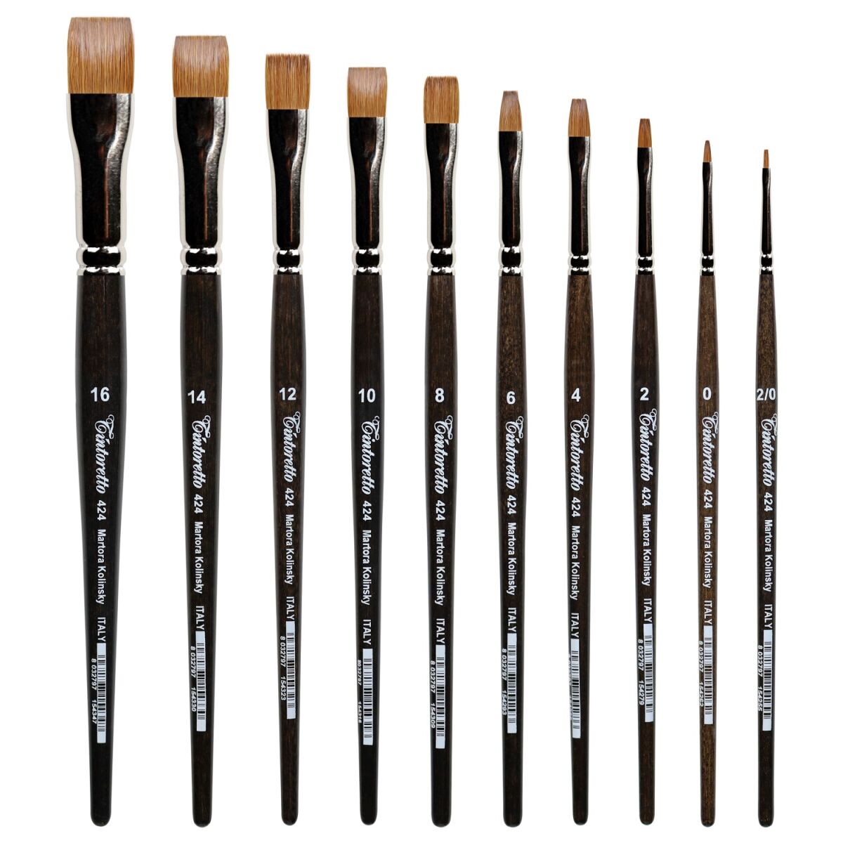 Düz fırça, Kolinsky samur kılı. Nikel kaplı pirinç yüksük. Kısa ahşap sap, siyah vernikli