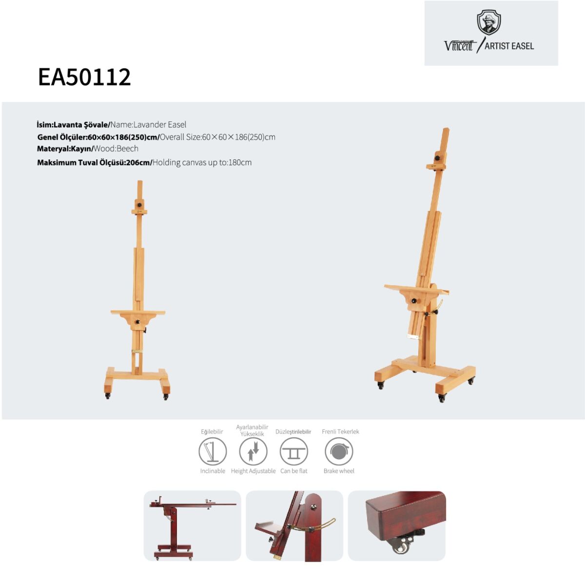 Gelince Haber VerLavanta, profesyonel sanatçılar için geniş ölçekli çalışma kapasitesi ve üstün dayanıklılık sunan bir stüdyo şövalesidir. Masif kayın ağacının sağlam dokusu, büyük boyutlu projelerde bile sarsıntısız bir üretim süreci sağlar. Geniş dikey yapısı ve kilitlenebilir sürgü mekanizması sayesinde, sanatçıya farklı açılarda ve yüksekliklerde ergonomik bir çalışma konforu sunar.