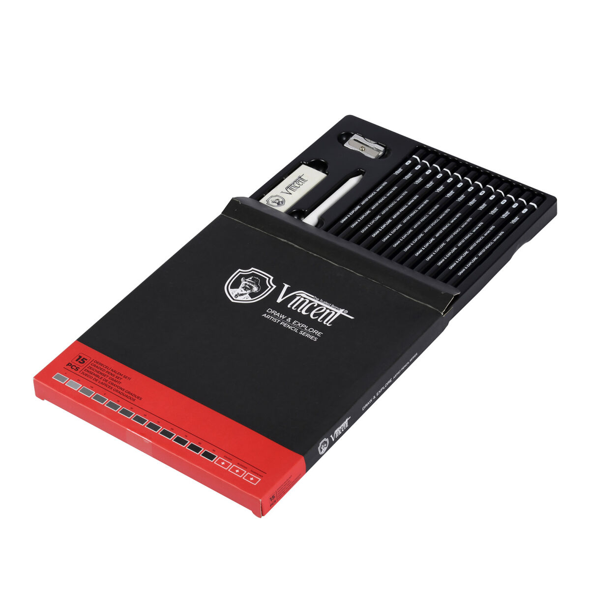 Kara kalem sanatçılarının yakın işbirliğiyle atölyelerimizde geliştirilen yüksek kaliteli Vincent Draw & Explore kalemlerimiz çizim konusundaki ihtiyaçları mükemmellikle karşılayacaktır.