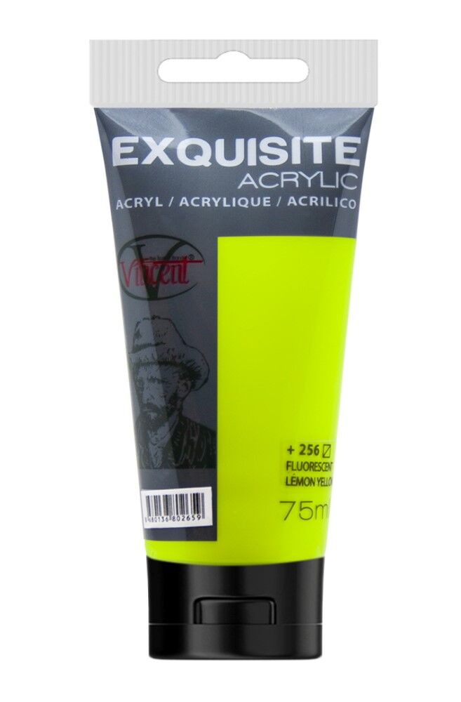 Vincent  Exquisite Akrilik Color profesyonel sanatçılar için yüksek kaliteli doğal pigmentlerle hazırlanmış olup, yüksek derecede ışık haslığına sahiptir.100 renk seçeneği ile bir dünya markasıdır. Tüm zeminlerde kolayca uygulanabilir ve su ile inceltilebilir. Kuruduktan sonra suya dayanıklıdır.  Akrilik boyaya uygun yardımcı malzemelerle kullanıldığında çok daha iyi sonuçlar verir. Vincent  Exquisite akriliğin uygulama yapılacağı ortamın 5 C’nin üzerinde olması, donma riskini ortadan kaldırır.