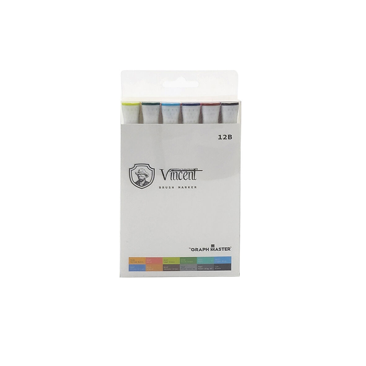 Vincent Graphmaster marker'ları alkol bazlı, toksik olmayan mürekkeplerdir ve dolum mürekkepleri olarak yeniden doldurulabilir özelliktedir. Pürüzsüz ve canlı renkler sağlamak için profesyoneller tarafından seçilmiş 200 farklı rengi mevcuttur. Gelişmiş mürekkep formülasyonları, yüksek kaliteli ince ve geniş uçlarıyla hatsız temiz çizgiler sunar. Ergonomik olarak tasarlanmış marker gövdesi, kullanıcıların markerları daha iyi kavramasına yardımcı olur. Kilit özellikli kapaklar mürekkeplerin kurumasını önler. Markerlar ASTM'ye uygun AP sertifikalıdır.