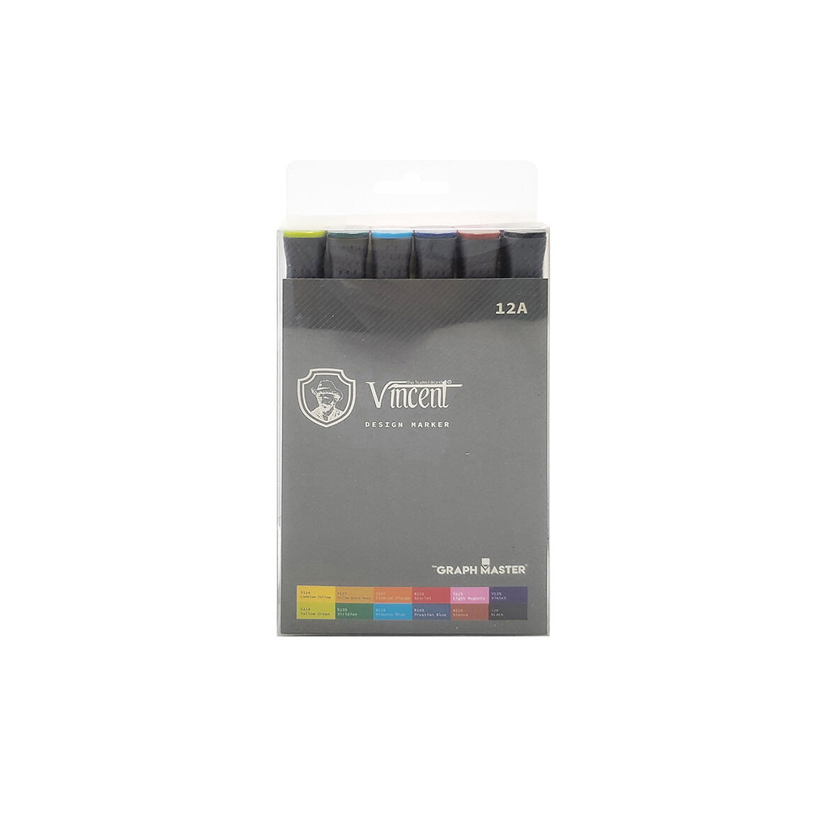 Vincent Graphmaster marker'ları alkol bazlı, toksik olmayan mürekkeplerdir ve dolum mürekkepleri olarak yeniden doldurulabilir özelliktedir. Pürüzsüz ve canlı renkler sağlamak için profesyoneller tarafından seçilmiş 200 farklı rengi mevcuttur. Gelişmiş mürekkep formülasyonları, yüksek kaliteli ince ve geniş uçlarıyla hatsız temiz çizgiler sunar. Ergonomik olarak tasarlanmış marker gövdesi, kullanıcıların markerları daha iyi kavramasına yardımcı olur. Kilit özellikli kapaklar mürekkeplerin kurumasını önler. Markerlar ASTM'ye uygun AP sertifikalıdır.
