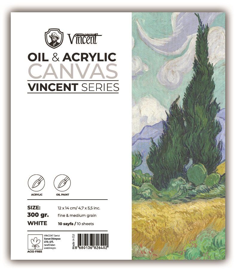 VINCENT OIL&ACRYLIC CANVAS DEFTER Avrupada üretilen asitsiz beyaz 10 yaprak 300gr. Karton kapak, 2 mm mukavva altlık. Yağlı boya, akrilik boya çalışmalarınız için uygundur.